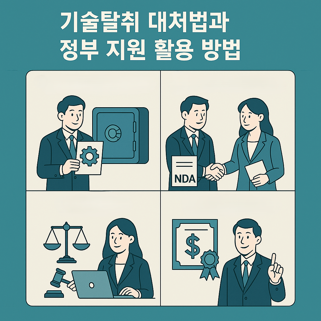 기술탈취 시 법적 대응은 큰 비용이 필요하다. 이때 기술보호 정책보험과 법무지원단 제도를 활용하면 금전적 부담을 줄일 수 있다.
